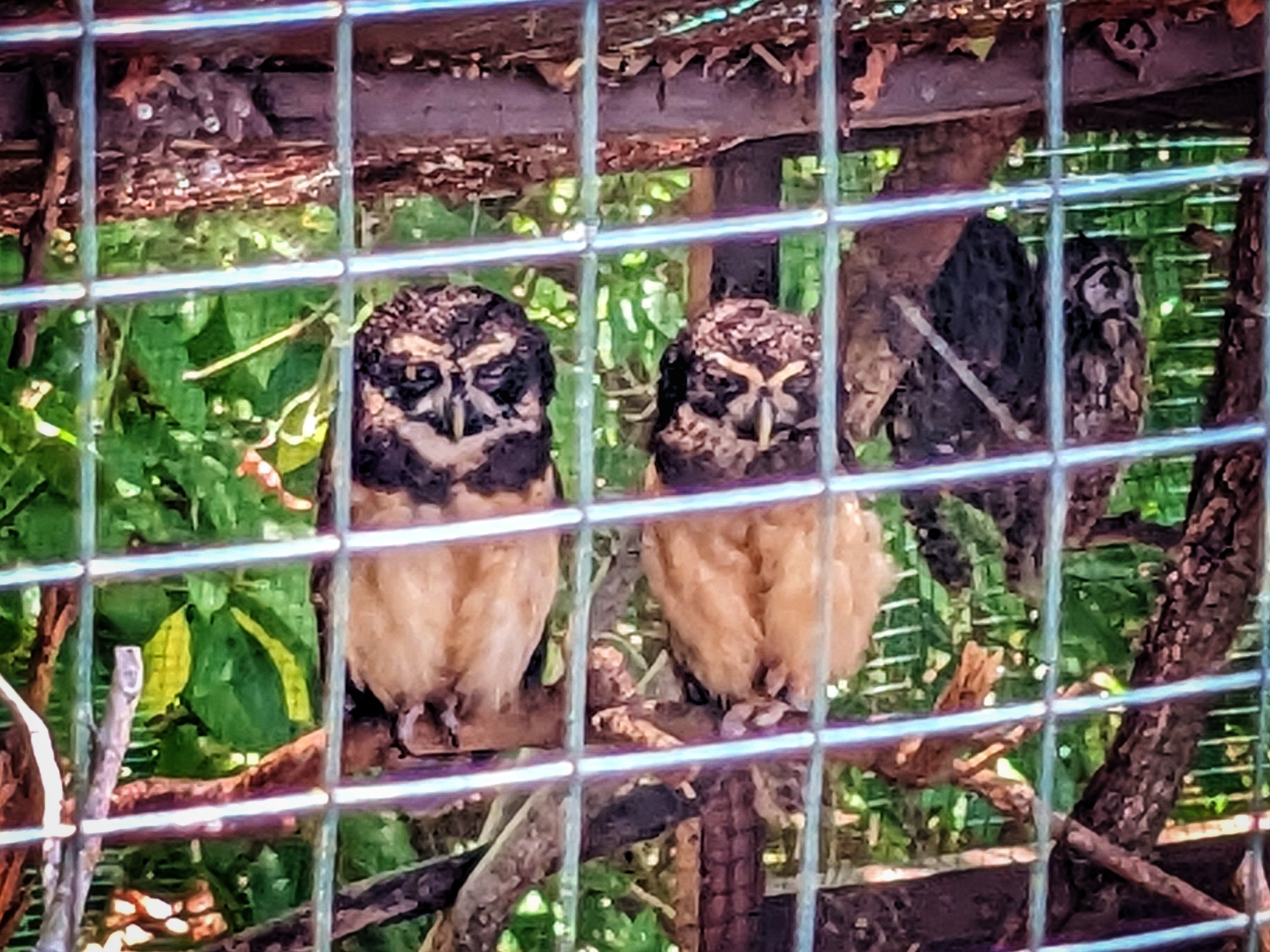 Some of the animals, for one reason or another, can never be released. Some animals are too sick and need daily medication or a special diet. A parrot with only one wing would not survive in the wild for long. Similarly, a racoon (Lil’Dahma) was already too attached to humans; the team tried to release him three times but he cried for over an hour and kept coming back to them. He is clearly happy in his enclosure by the kitchen and gets to “play” with humans every day. Once he has grown a little bigger he will be able to join the 3 other racoons in their enclosure.
