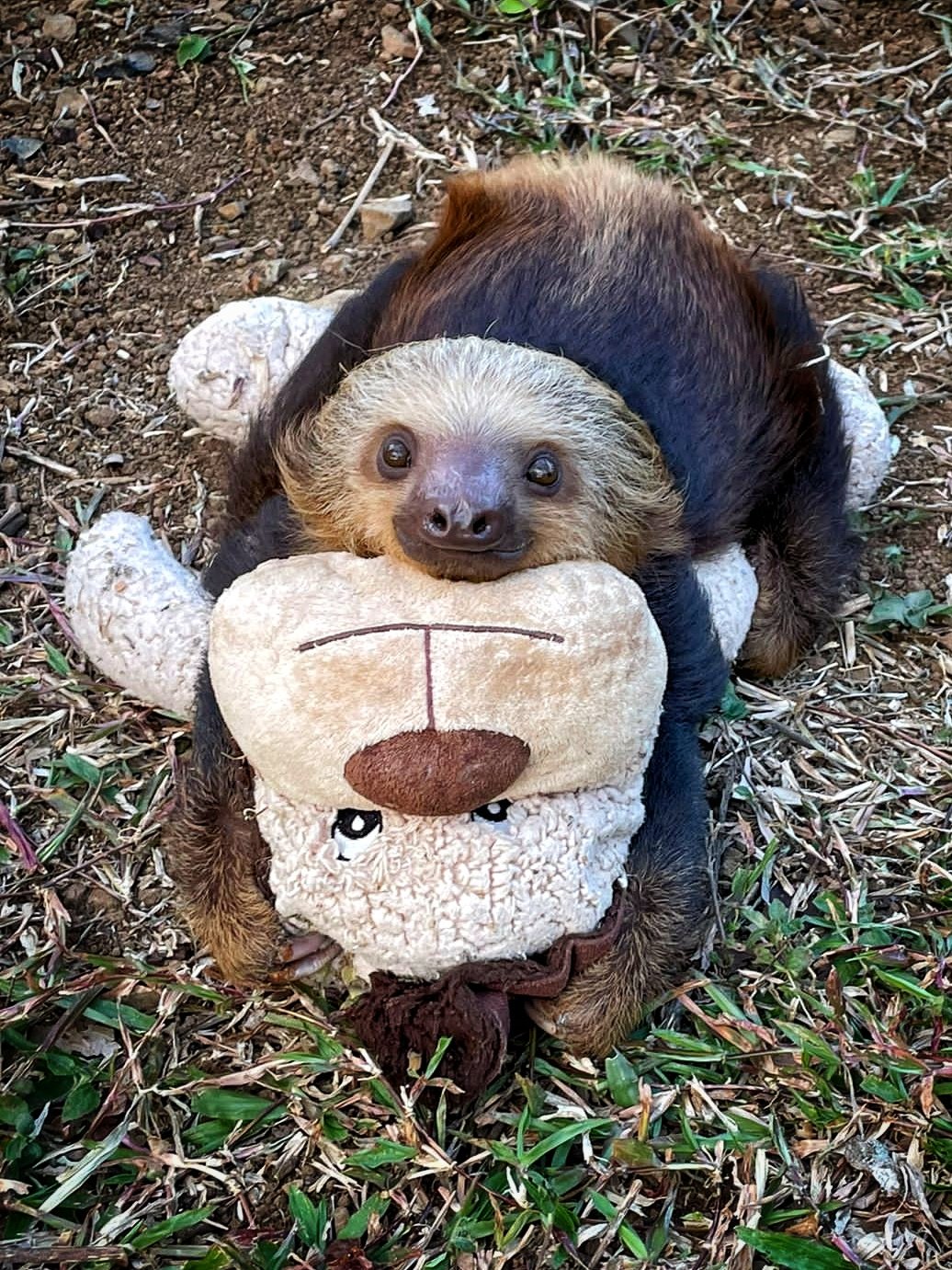 Of course this can be quite challenging to achieve as the baby sloths do need to be handled and do search out the comfort of a human as many of them had to be syringe fed with milk when they were brought in. As is the case with our new arrivals Forest and Bobby, both 3 toed sloths who arrived at the rescue center during the first few days of us being on the sloth team. Forest was around 3 weeks old when he arrived, sadly he was found with his mother who had died from toxic poisoning from the chemical runoff from a pineapple plantation. Luckily he showed no signs of poisoning and was placed in an incubator and began settling into his new environment and routine well. Bobby on the other hand was not so well when he arrived, found abandoned at approximately one week old and born prematurely with malabsorption and other problems he was very tiny and in a fragile state.