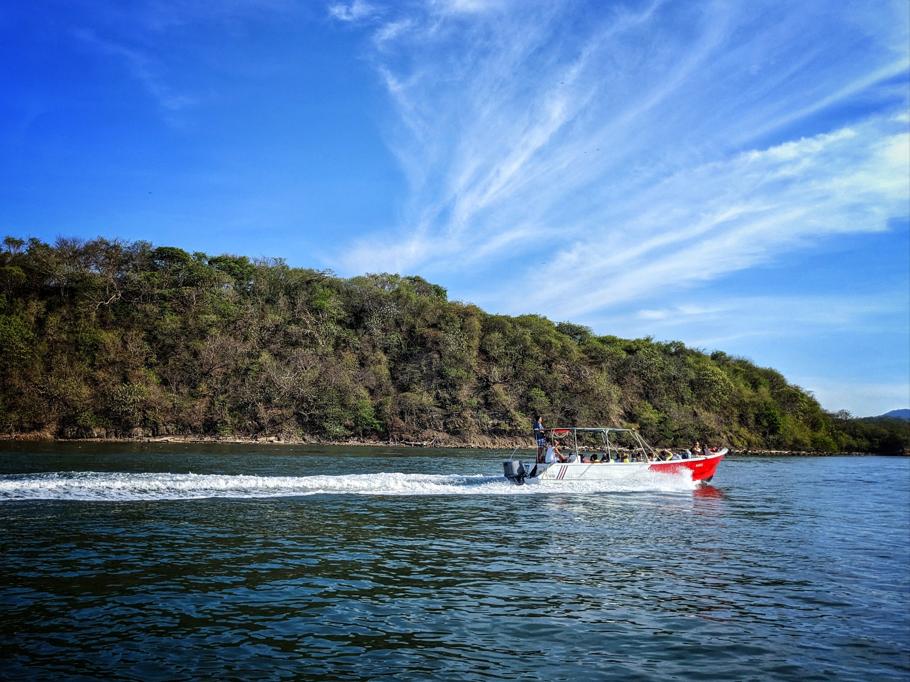 As this trip ran monthly, it was unsurprisingly very popular with approx 24 volunteers joining. The day started early for us as we worked the morning shift on the Sloth Team, after a quick lunch we set off in the minibus at 13:00. We drove for 1.5 hours to a small port on the west coast where we boarded two small(ish) boats, put on life vests, and “enjoyed” a rough 45 mins ride to a deserted beautiful beach on the opposite peninsula. Here we got to spend around an hour and half swimming in the warm sea and sunbathing, with snacks and drinks, and music on a massive portable speaker setting the party mood.