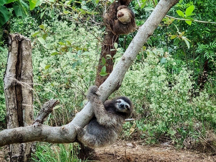 After lowering them into the tub, we’d carry them either to the “training trees”, or (later in our visit) to the sloth play park. The trees are closer to the vet hospital but are small so that the sloth cannot escape and can be extracted if they choose to stay too long. Each sloth had a certain amount of time (set by the vet team) that they should be out. The bigger ones approx 30 mins, the smaller ones 20 mins for each shift (twice a day).
