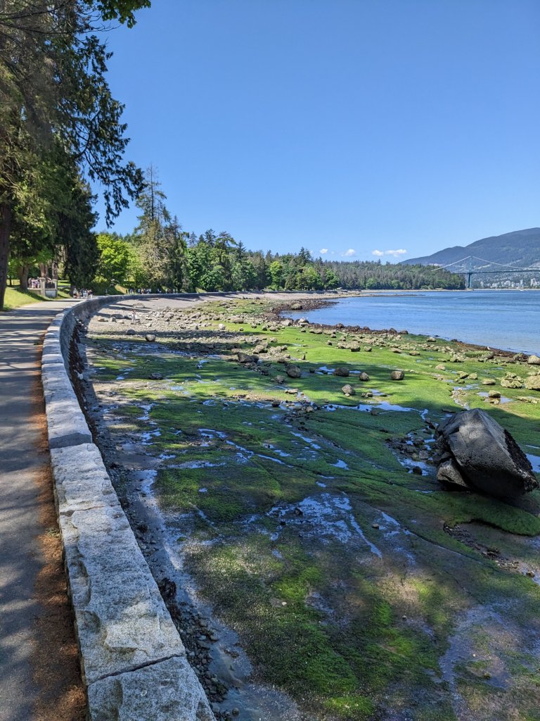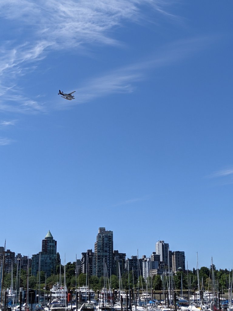 Whilst waiting for our Motorhome deal to go through we had 11 glorious days in Vancouver city. The weather was perfect, warm and dry (sometimes a little on the windy side) and having plenty of time on our hands we explored the beautiful city mostly on foot, we walked a lot! We spent a lot of time walking the sea wall, 28 km of sea wall with stunning views of the city, mountains and the sea.