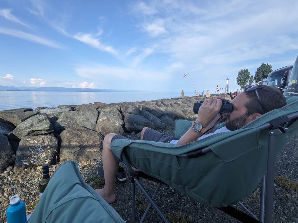 At another pitch, Salmon Point, we were Oceanside looking out across the Strait of Georgia, we had the most incredible view. Here we spent our time learning how to use our new binoculars viewing bald eagles, seals and humpback whales (far in the distance but still amazing)… Elizabeth also learnt that looking through the binoculars out to sea makes her seasick!