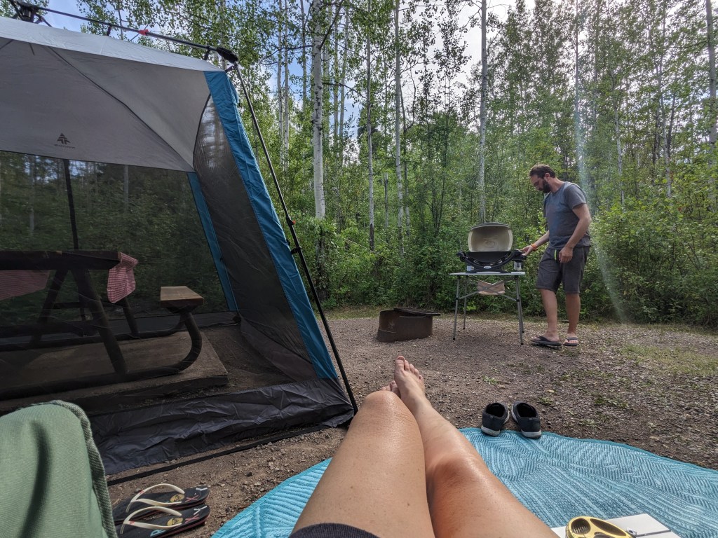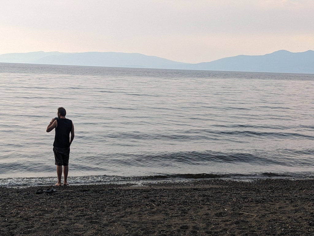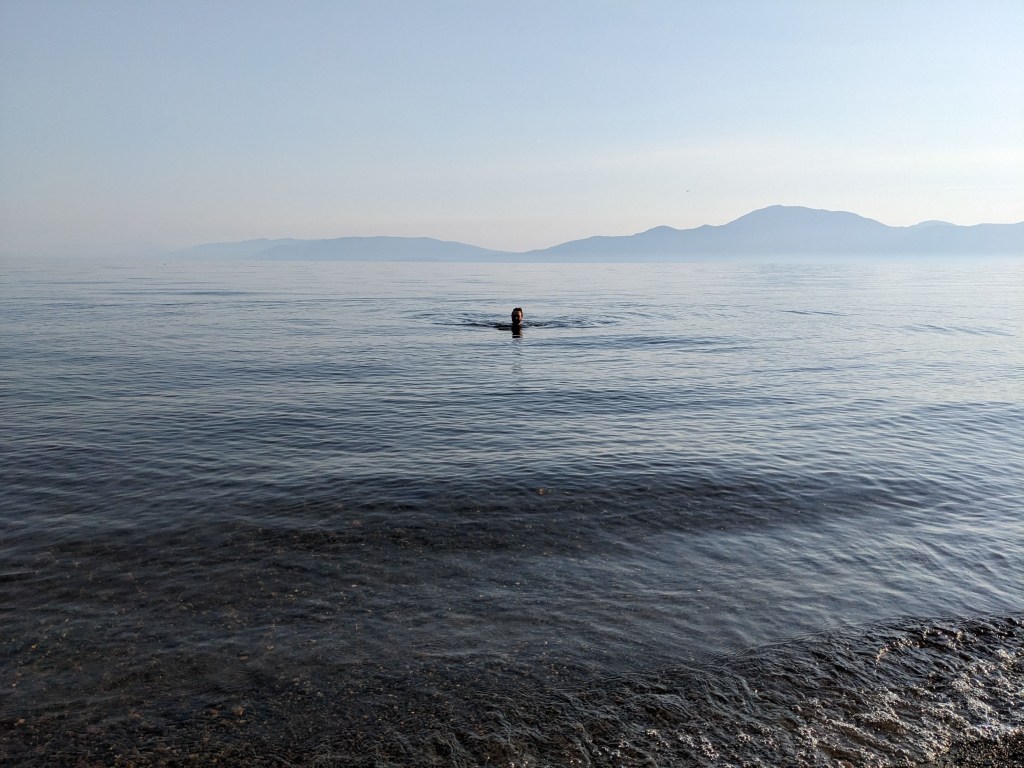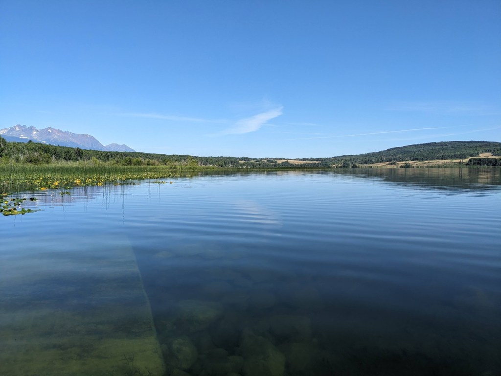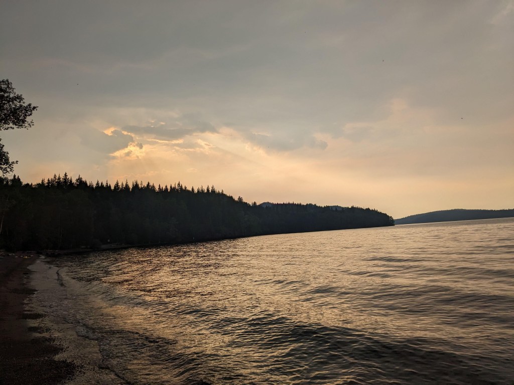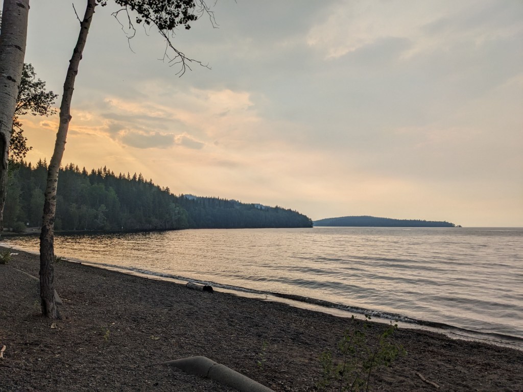 Heading back out the way we came in the wildfire appeared to have been beaten back a little but the smoke was thicker and we spent a few hours driving through scenery we couldn’t see until again it cleared….before we spotted more wildfires on the horizon. We made it to Tyhee Provincial Park and we were greeted with wonderful views and wildlife. We spent the next couple of mornings hiking the trails around the park, taking in the wonderful lake views and watching the wildlife. It was very hot in the afternoons so we spent them by the lake keeping cool. It was a very relaxing time.