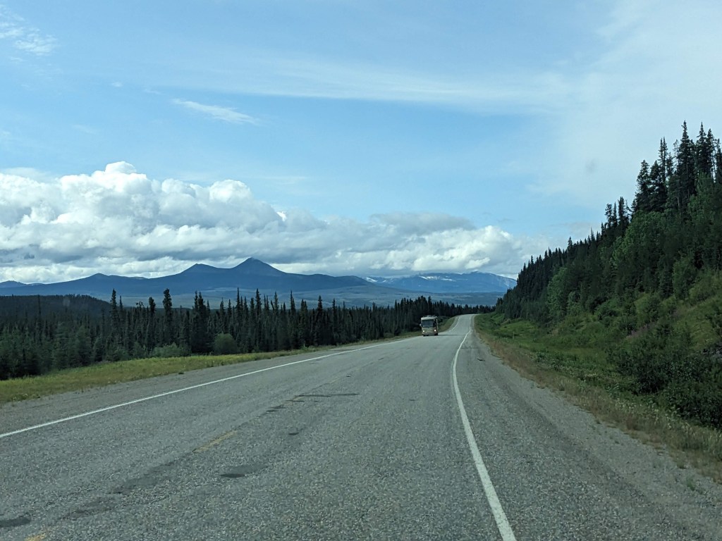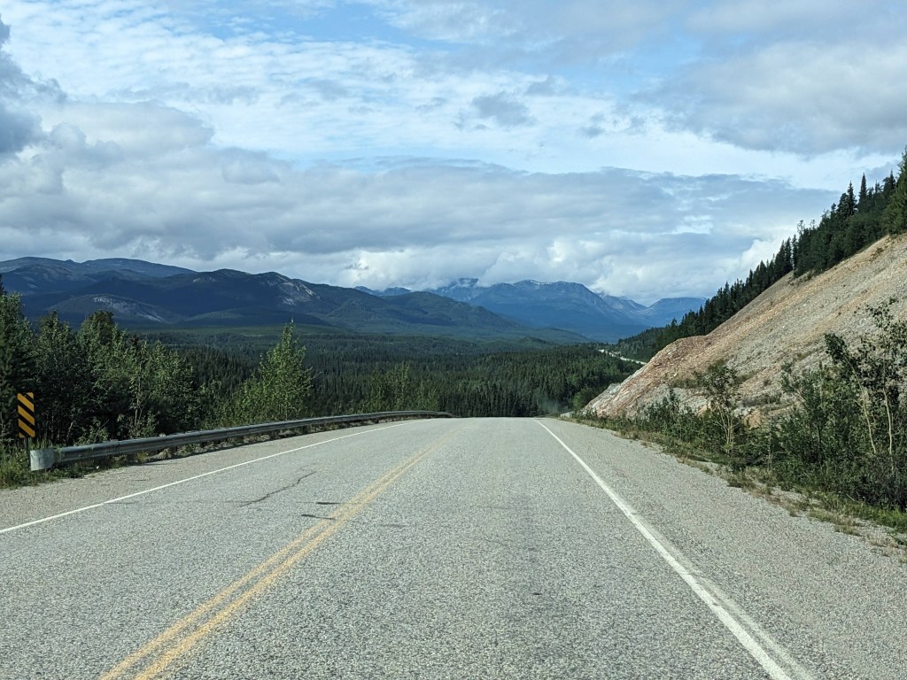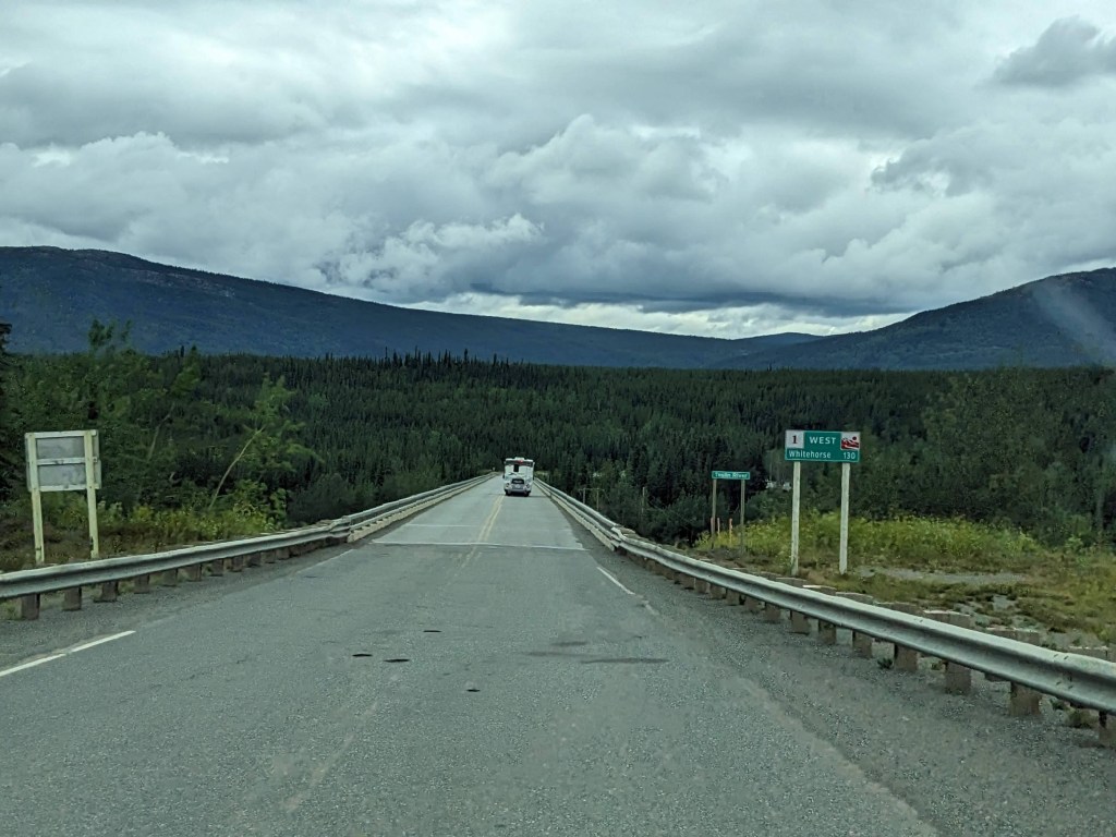It was time for the big “push” North, we left Boya lake early as we had a long drive ahead…..Satnav time +2hrs; we always have to add extra time to our Satnav prediction, Delta isn’t always as fast moving and we have to stop regularly. After about an hour’s drive, through forest destroyed by previous wildfires, we reached the British Columbia/Yukon provincial border! We’d made it to the Yukon! A real goal for us both, now all we had to do was drive to Whitehorse, the capital of the Yukon, some 420km away along part of the Alaska highway.