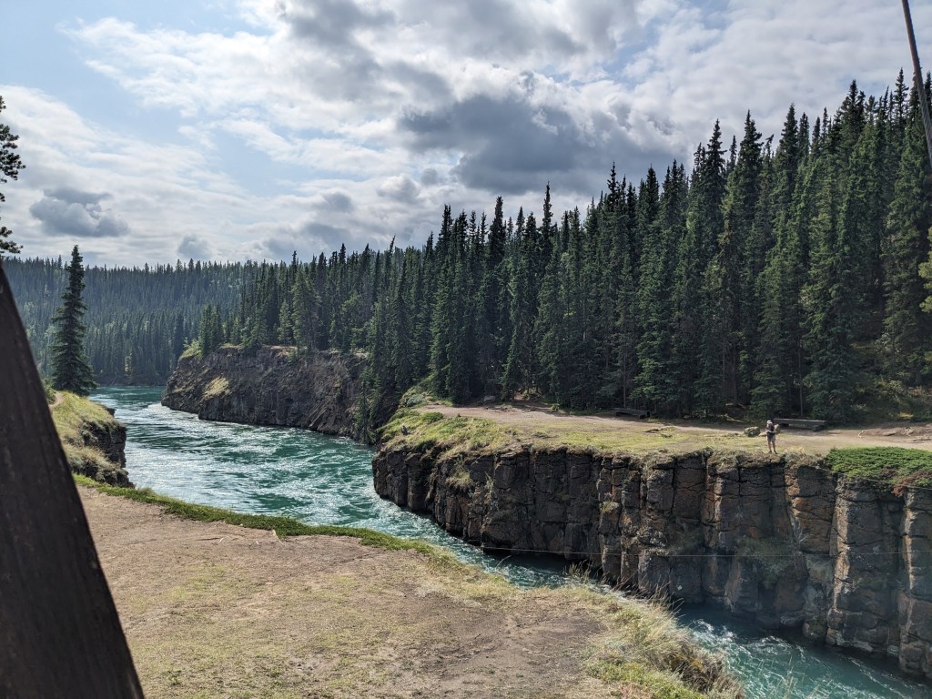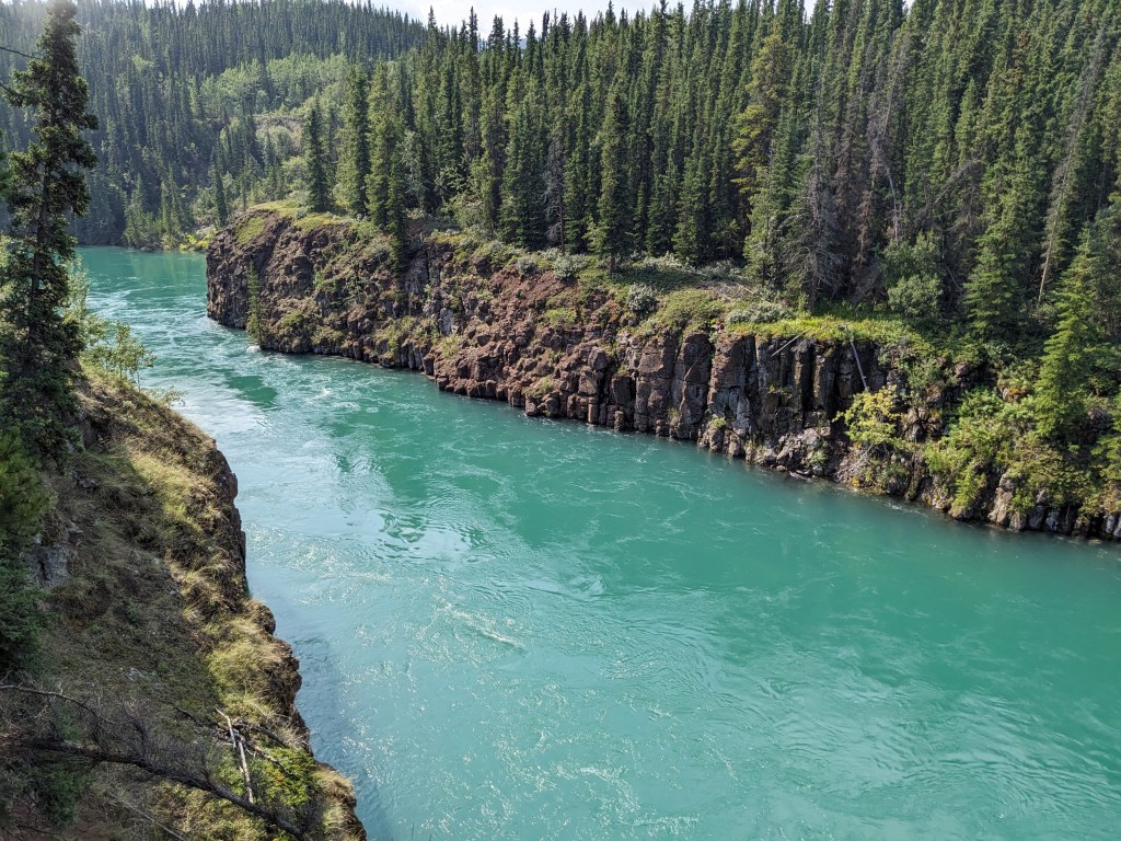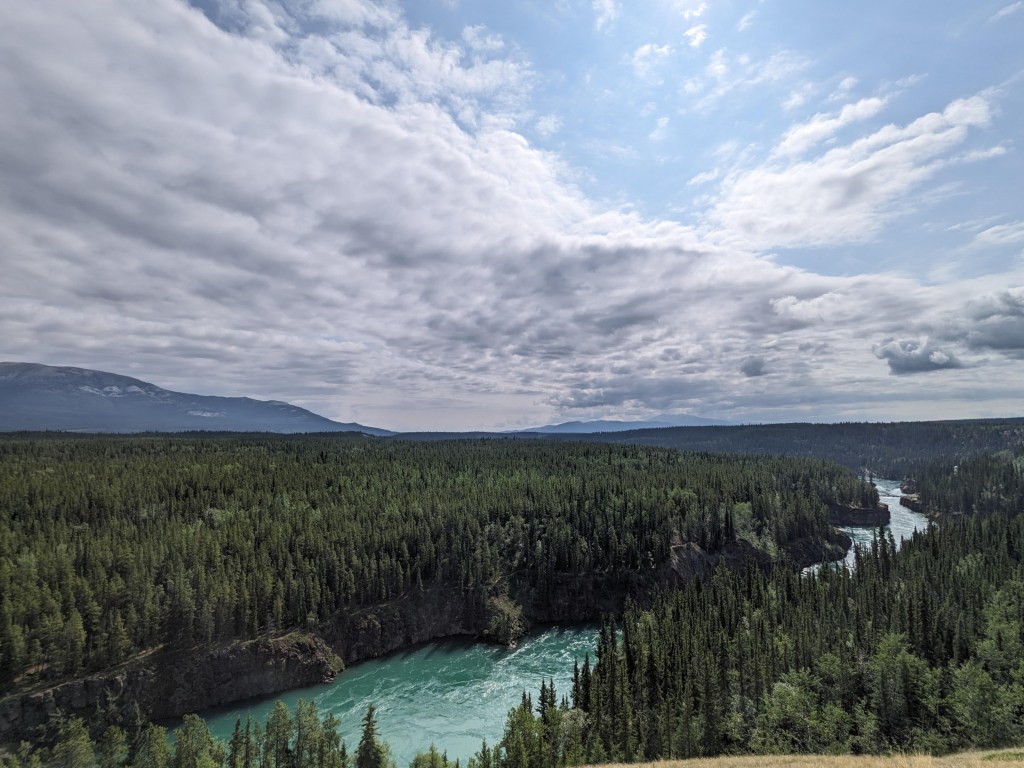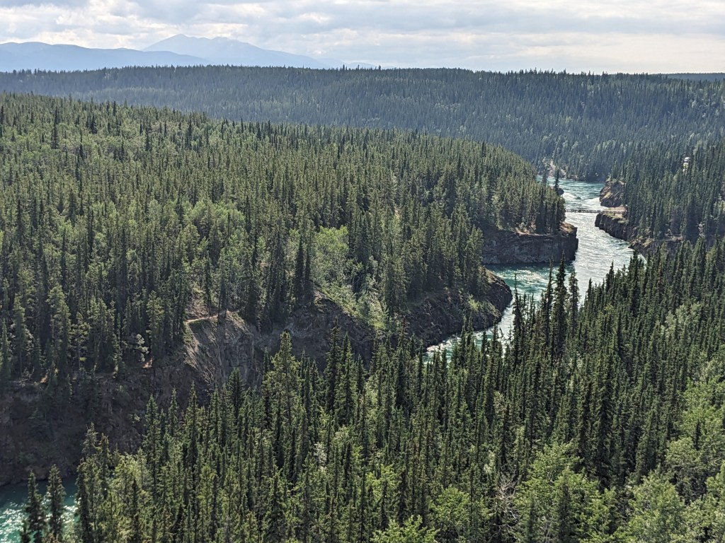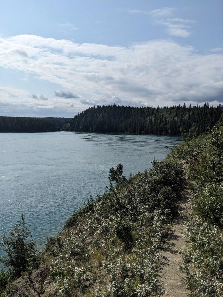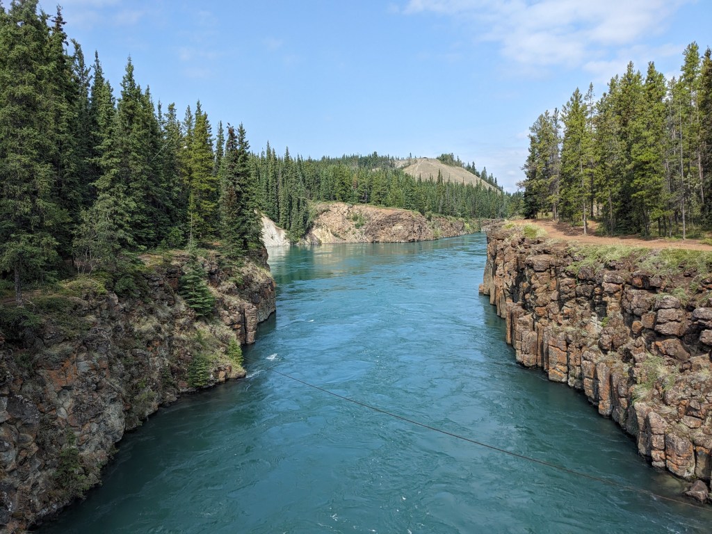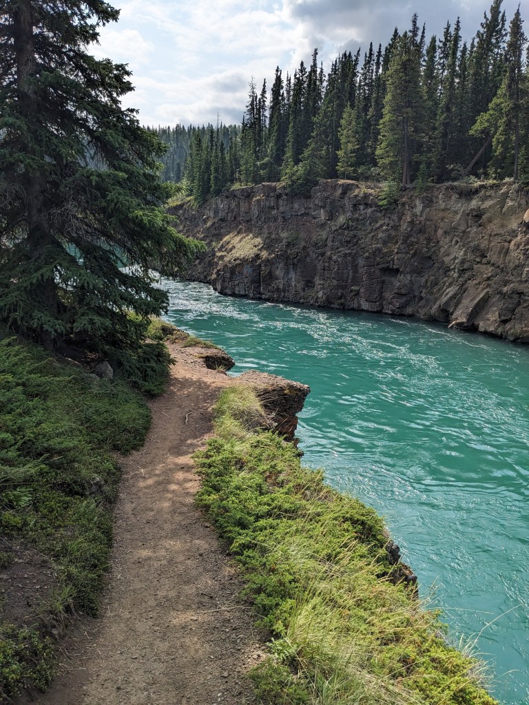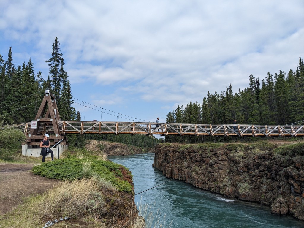 Day 2 in Whitehorse was an admin/laundry/cleaning day, we needed to get campsites booked up for the coming couple of weeks. But day 3 was a hiking day, an 18km hiking day. We headed along the Yukon River to the Miles Canyon Suspension Bridge, sometimes there was a hiking trail and sometimes not, but we got there and it was worth it, a truly impressive canyon with the river running through and under the suspension bridge. The hike back the other side was better marked but hard going and we were glad to get home and have an early night before our drive East along the Alaska highway to the beginning of the Northern Rockies.