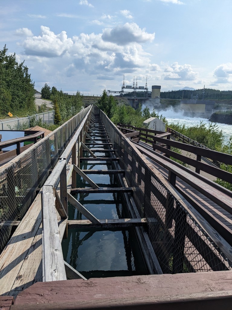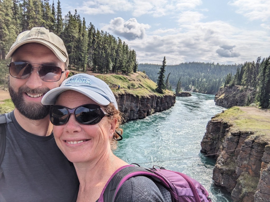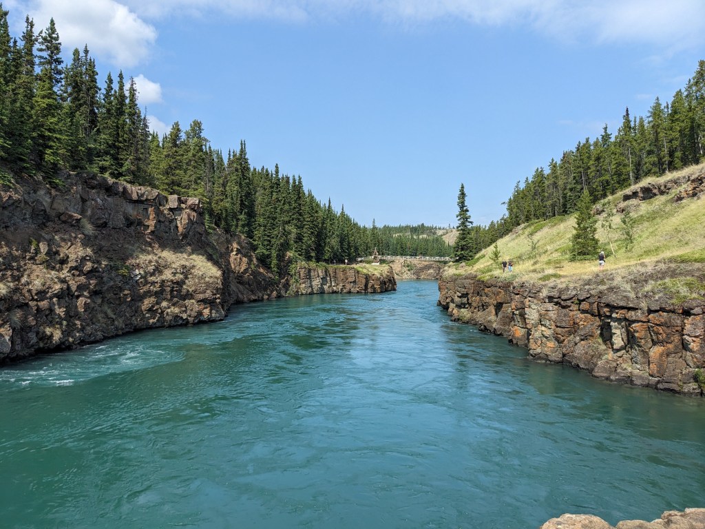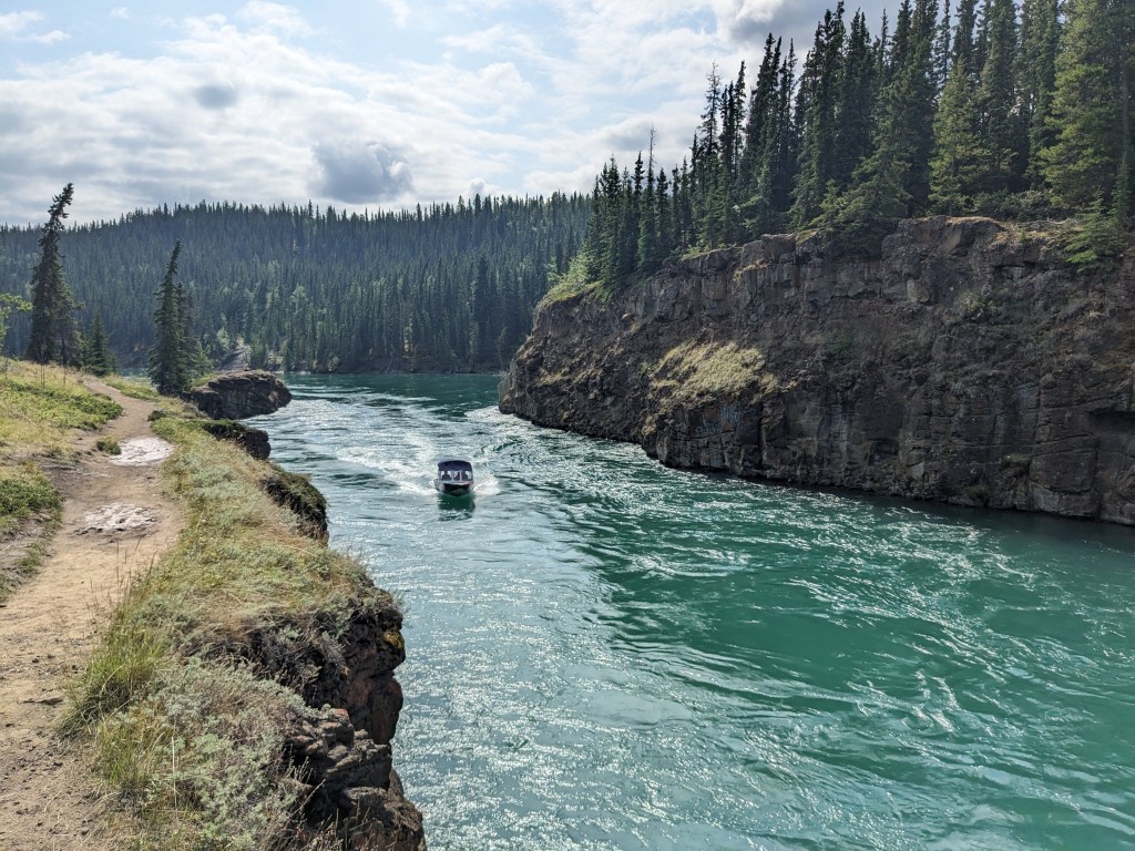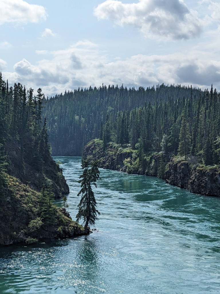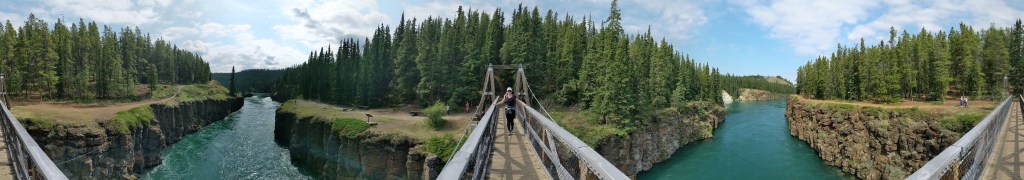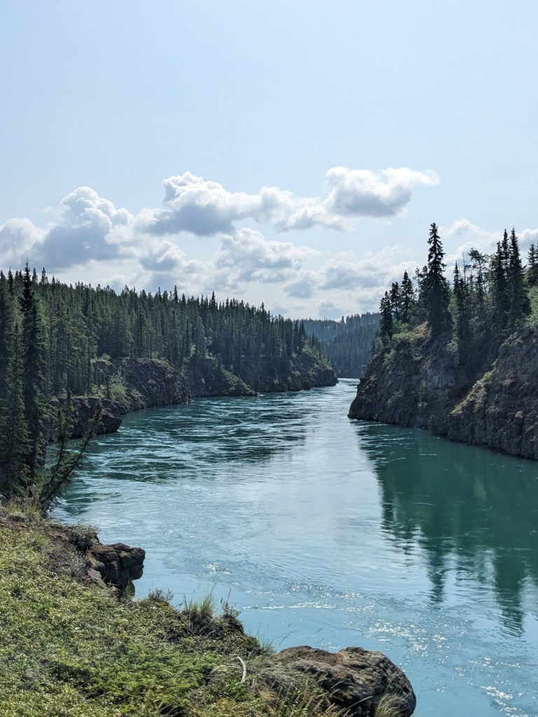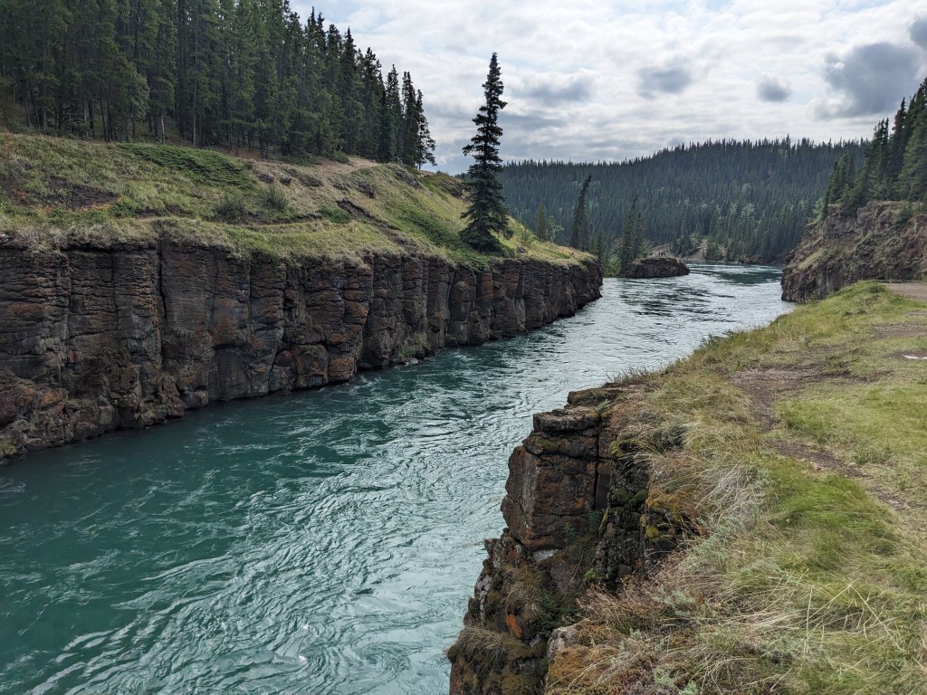 Day 2 in Whitehorse was an admin/laundry/cleaning day, we needed to get campsites booked up for the coming couple of weeks. But day 3 was a hiking day, an 18km hiking day. We headed along the Yukon River to the Miles Canyon Suspension Bridge, sometimes there was a hiking trail and sometimes not, but we got there and it was worth it, a truly impressive canyon with the river running through and under the suspension bridge. The hike back the other side was better marked but hard going and we were glad to get home and have an early night before our drive East along the Alaska highway to the beginning of the Northern Rockies.