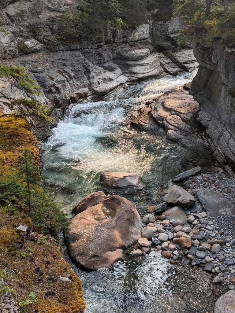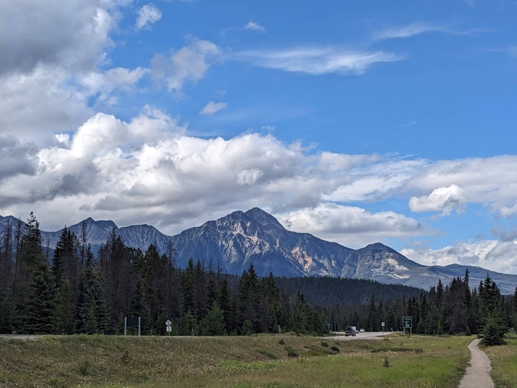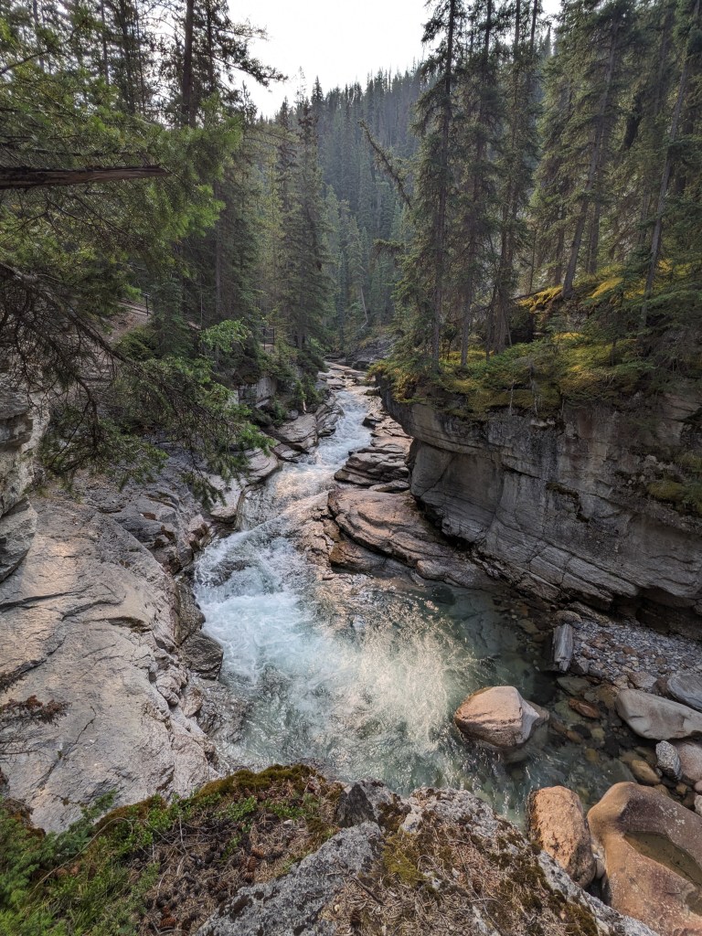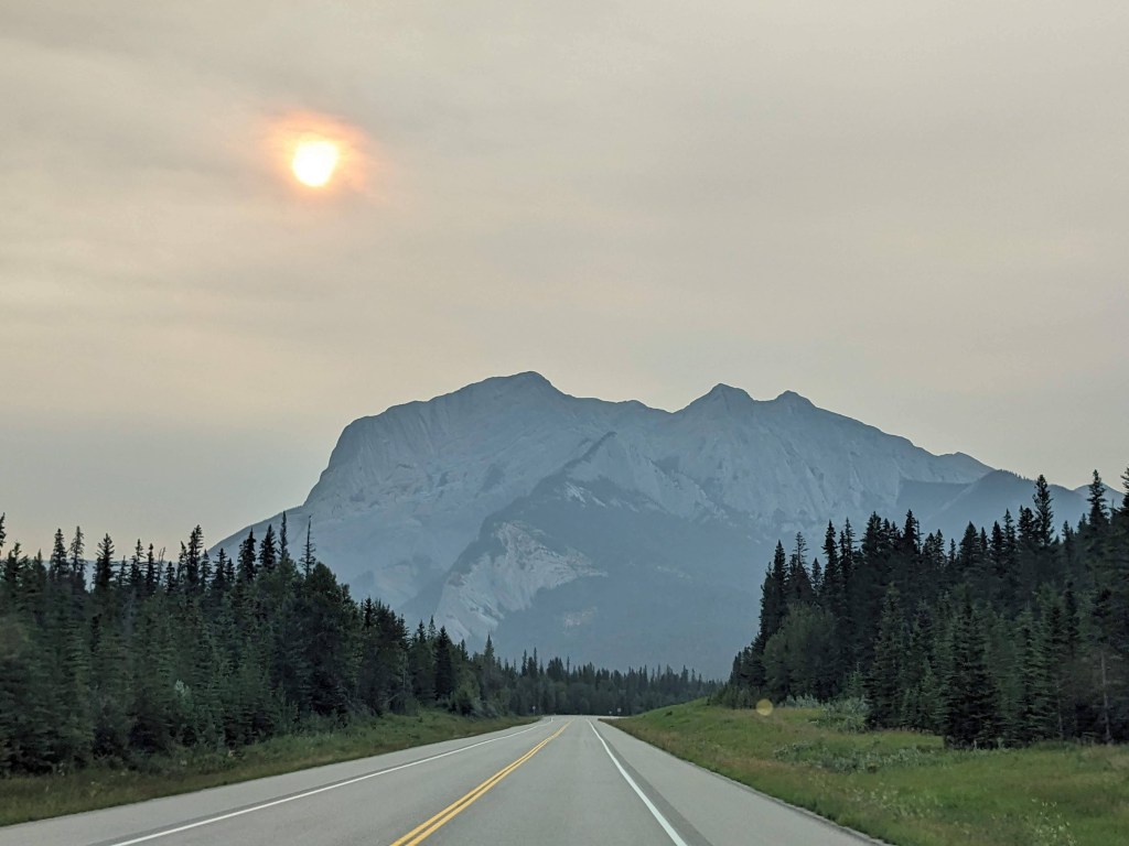 After driving down the Alaska Highway we were looking forward to a few nights in Jasper National Park and it didn’t disappoint! We crossed the provincial border from British Columbia into Alberta and jumped a time zone. The weather was iffy but our pitch at Whistler’s campground was perfect; we had fabulous views, fantastic neighbours (Anita & Mark, and Axel the totally gorgeous Rottweiler!) and there were a lot of hikes to do! Again sometimes we lost the views due to smoke and/or bad weather but we loved our time exploring Jasper town and the surroundings; Maligne Canyon and the Fort trail being our favourites. But the true highlight of our stay in Jasper were the Elk that grazed and slept all throughout our campsite! We kept a safe distance as they are wild animals but it was just amazing to see them wandering around so close to motorhomes and tents.