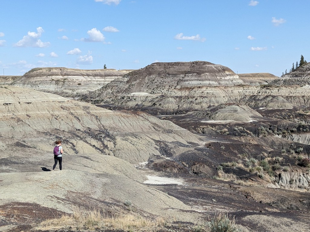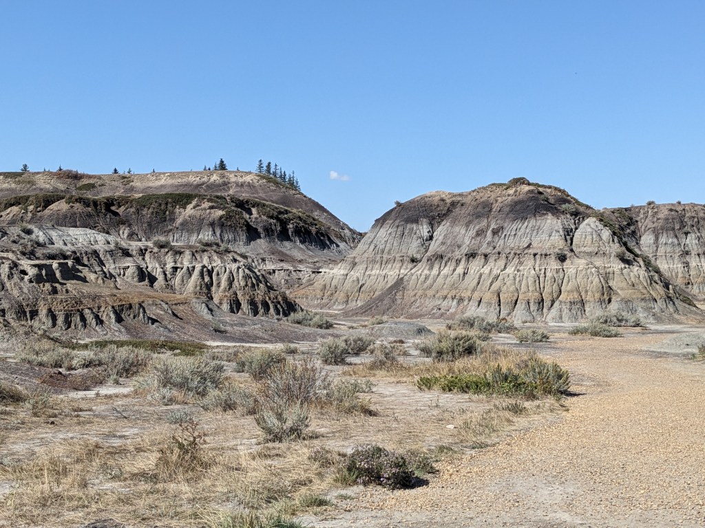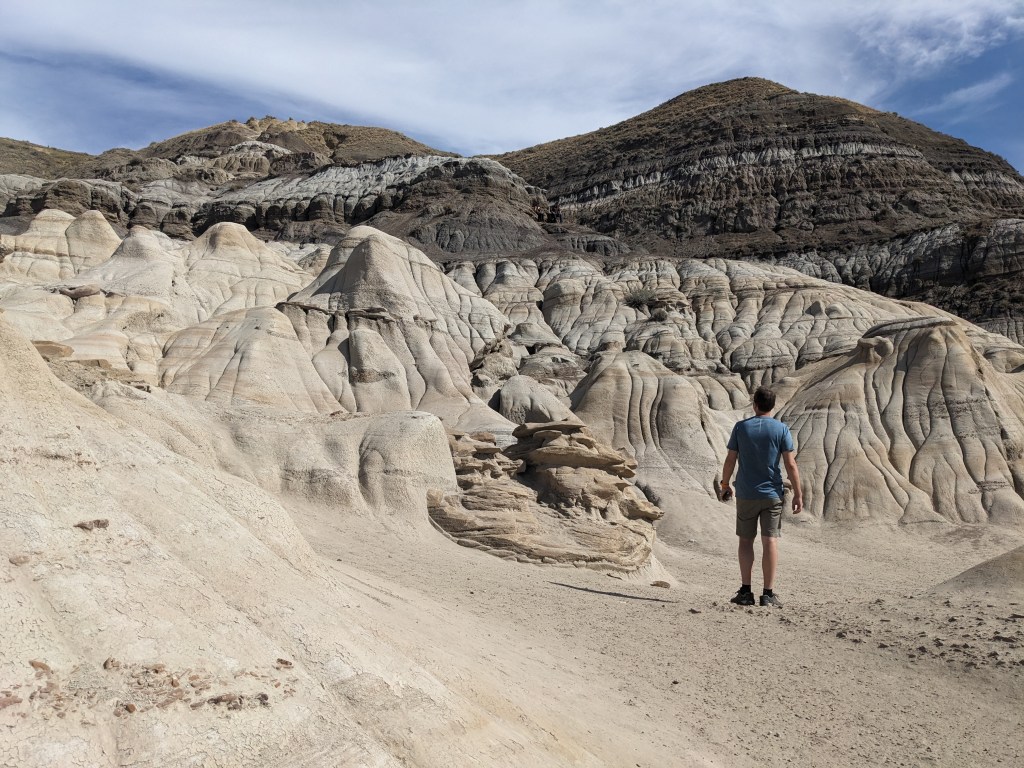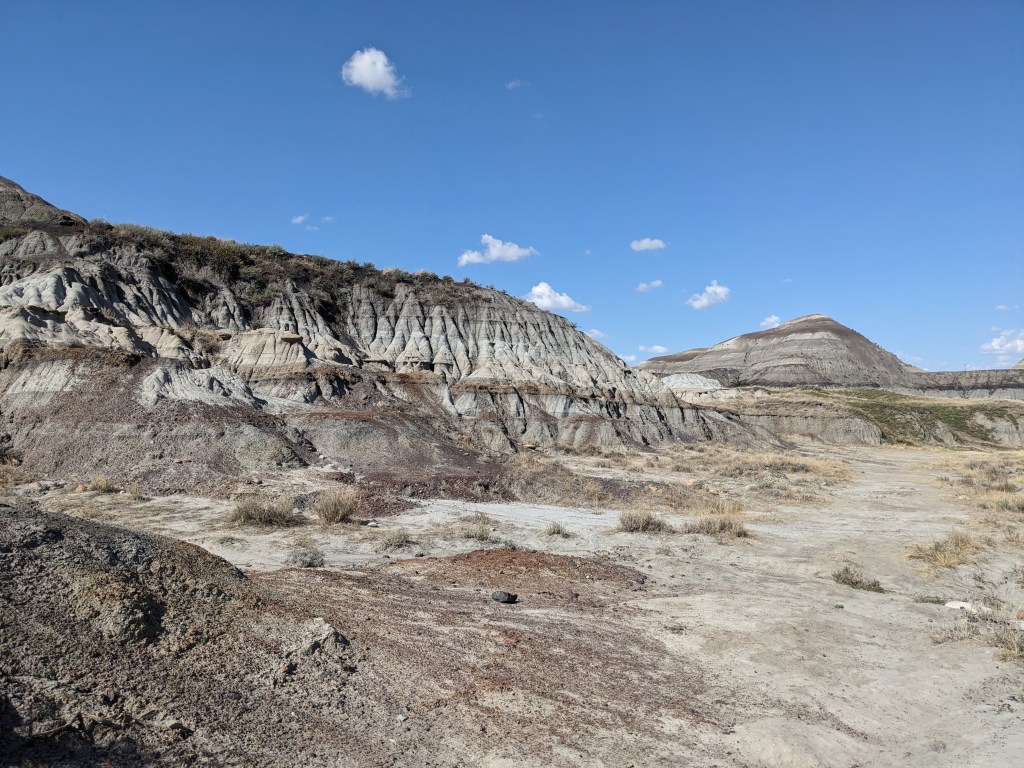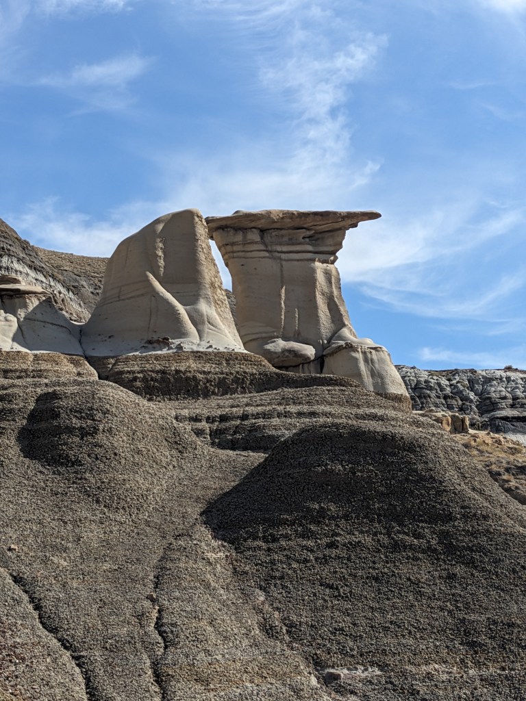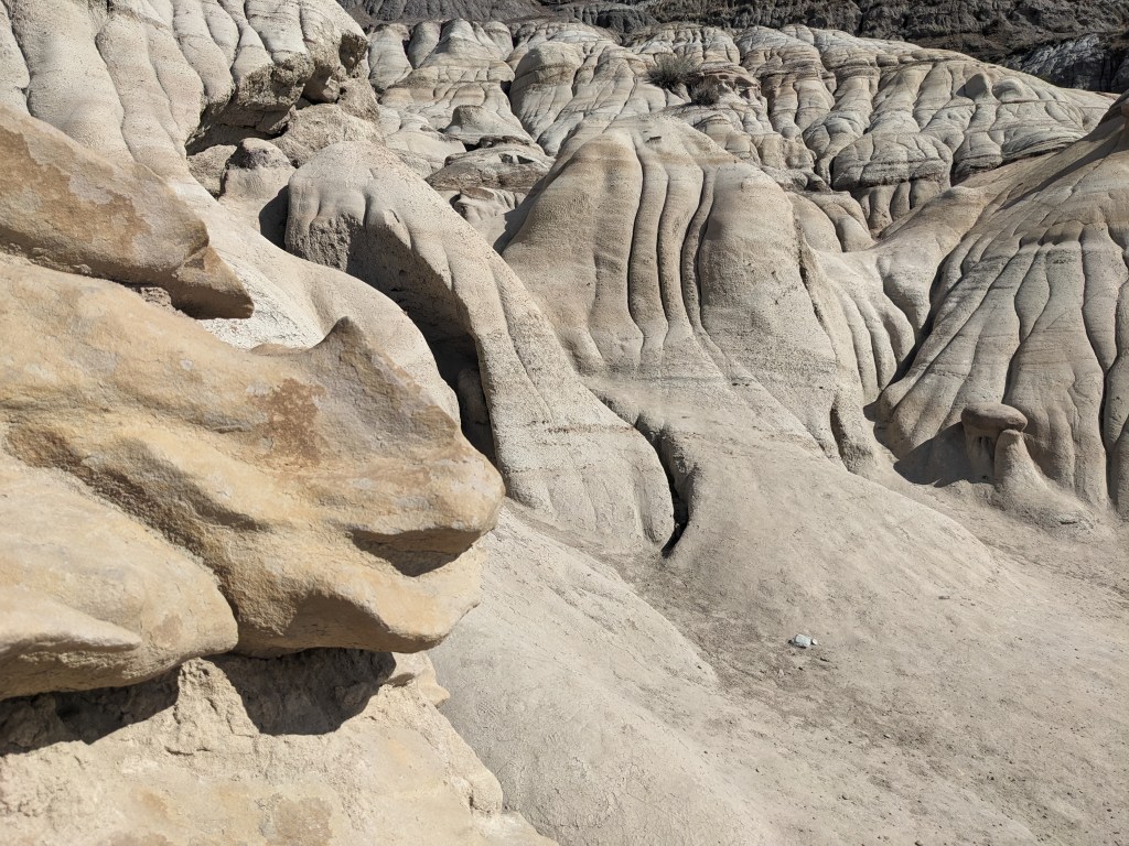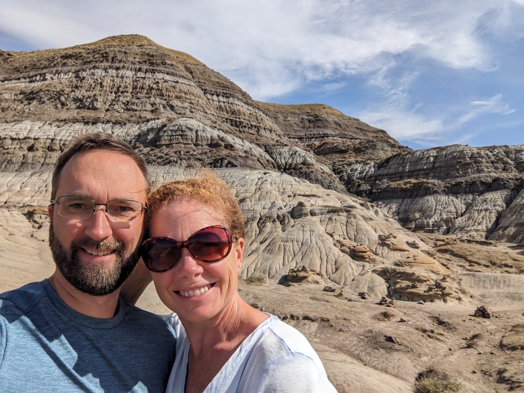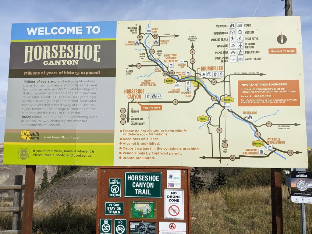 Drumheller had been on our list of “must visit” places since the beginning of our trip. Drumheller is in an area of Canada known as the Badlands (which stretches East from Drumheller in Alberta to the Saskatchewan border and south to the United States) and is home to amazing rock formations and the largest deposits of dinosaur bones in the world….a geologists paradise!