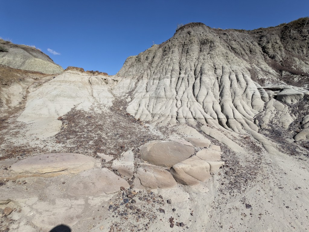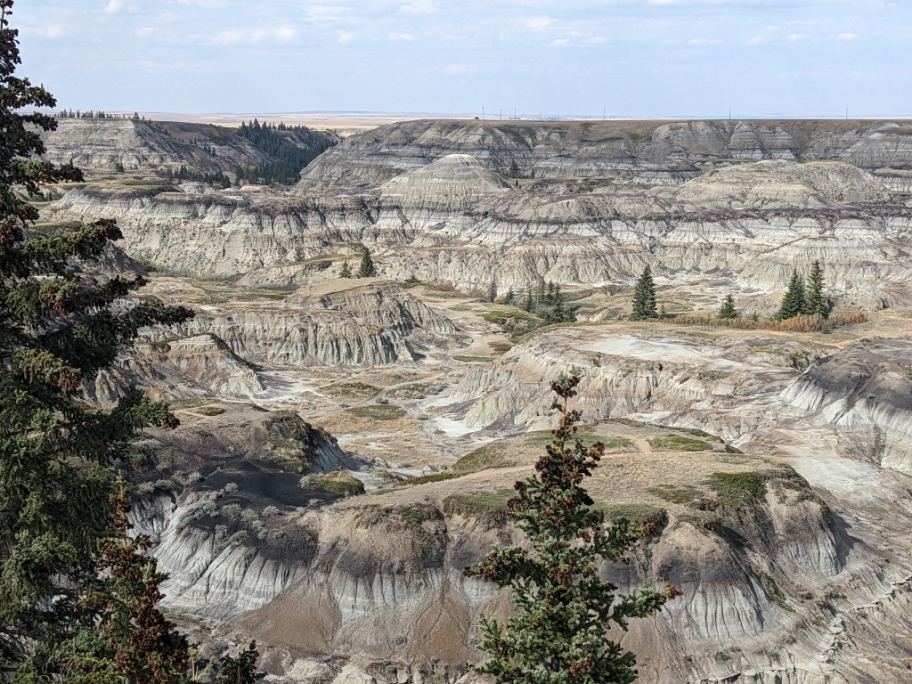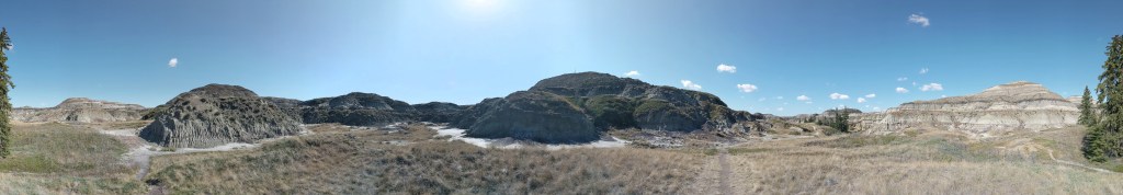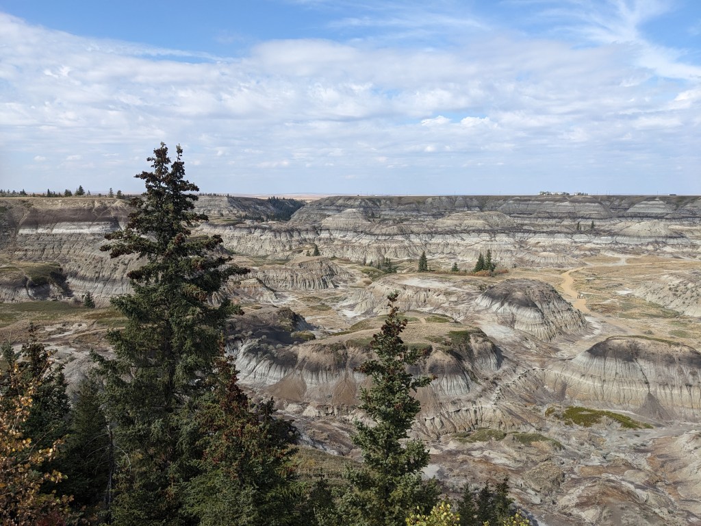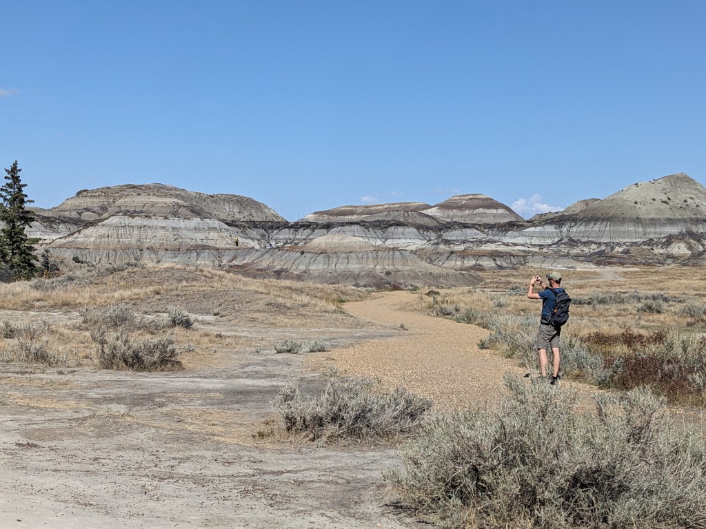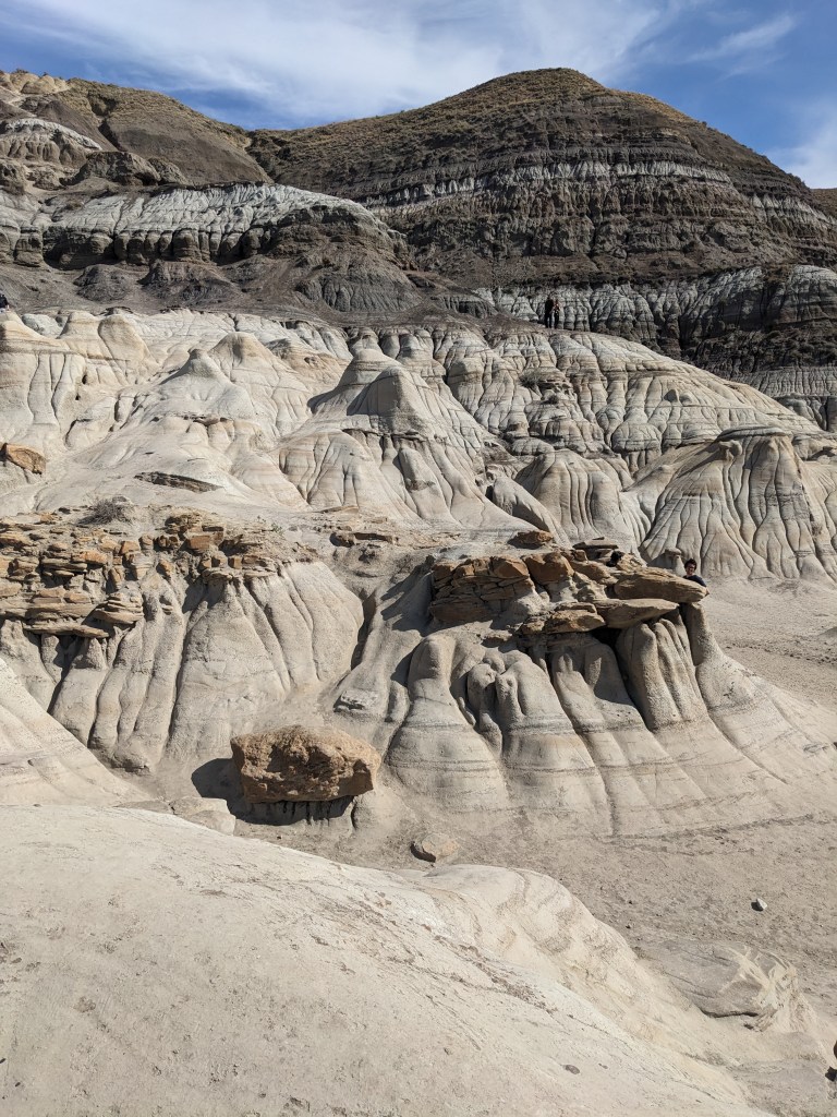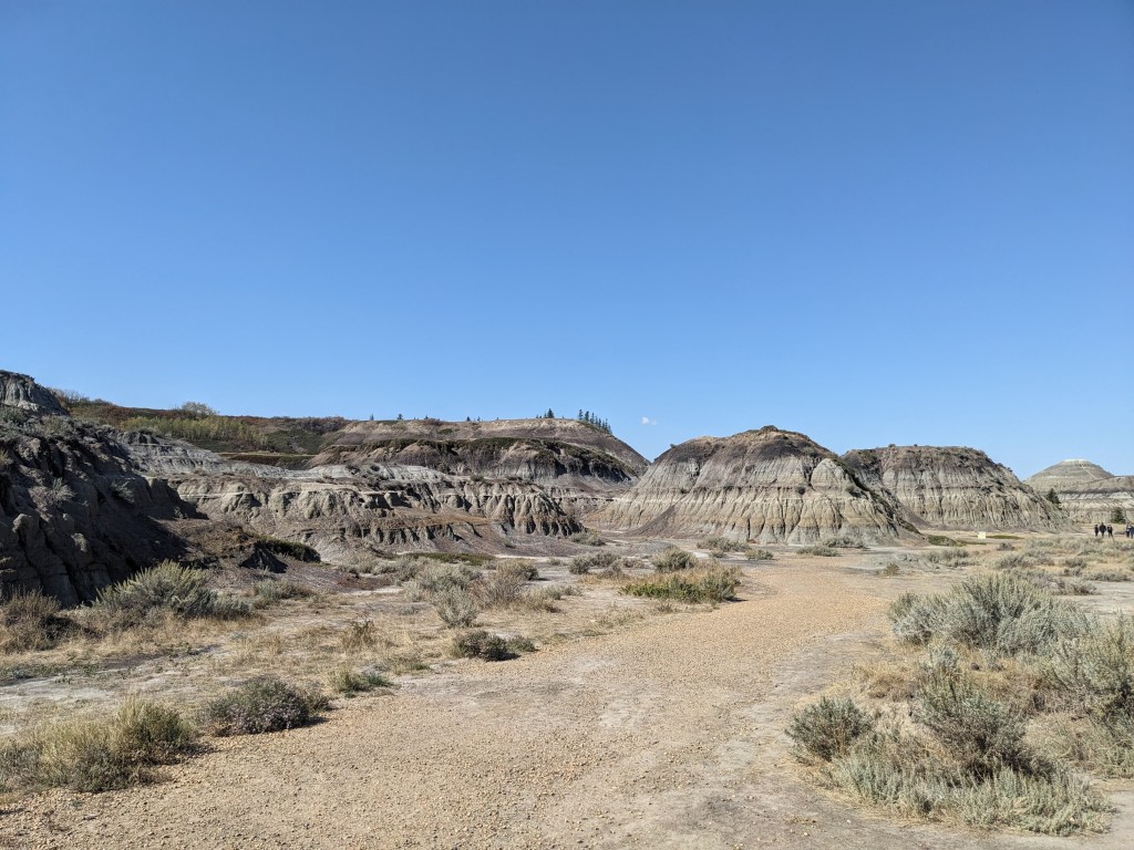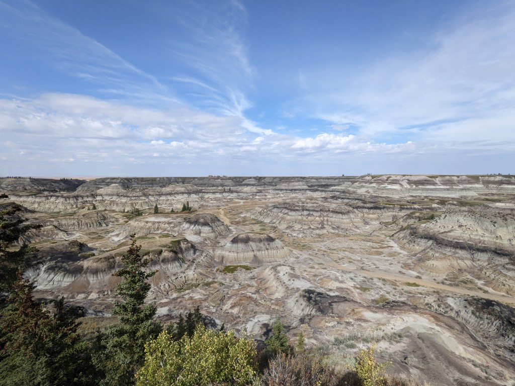 Drumheller had been on our list of “must visit” places since the beginning of our trip. Drumheller is in an area of Canada known as the Badlands (which stretches East from Drumheller in Alberta to the Saskatchewan border and south to the United States) and is home to amazing rock formations and the largest deposits of dinosaur bones in the world….a geologists paradise!