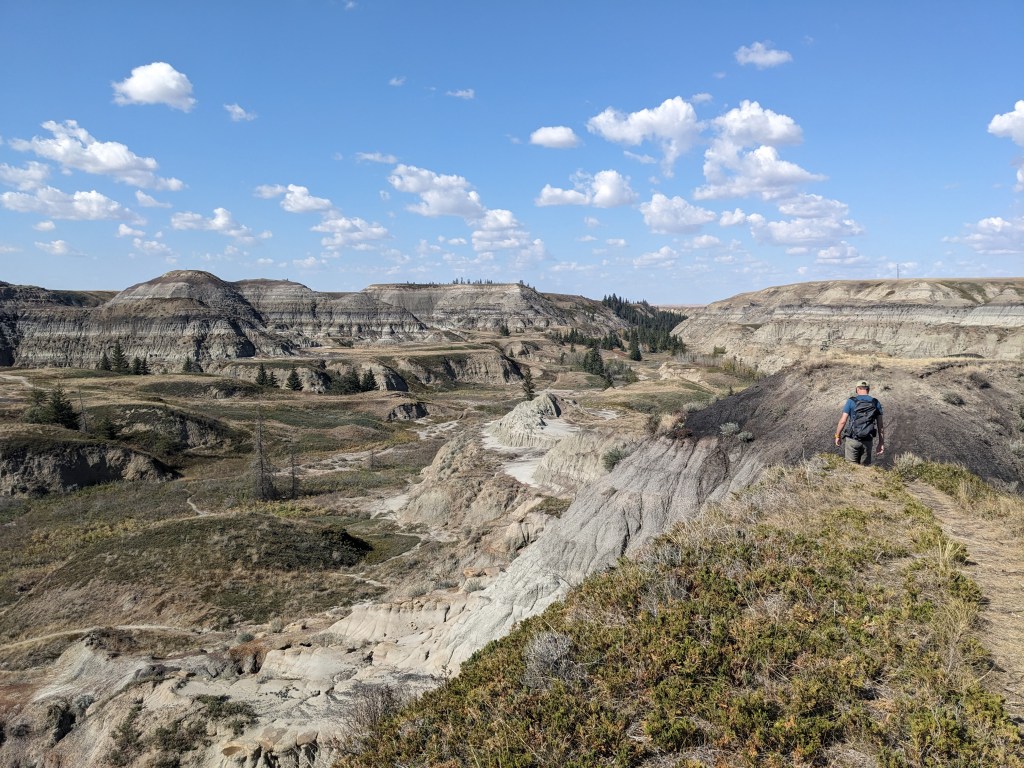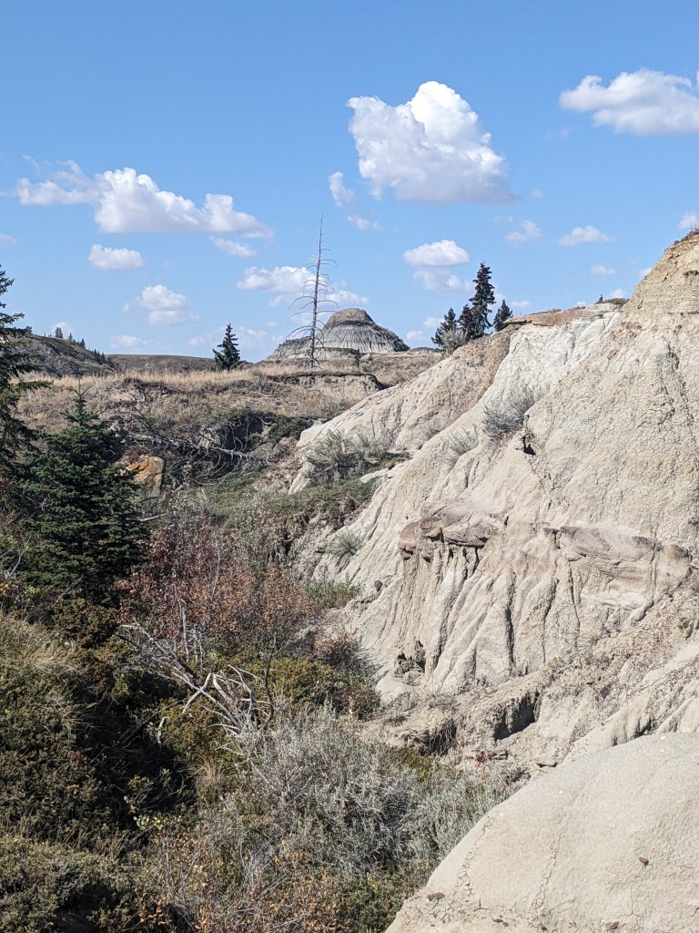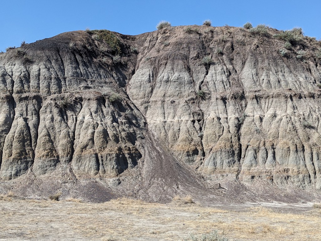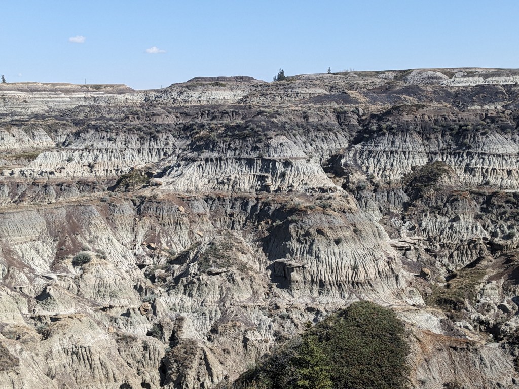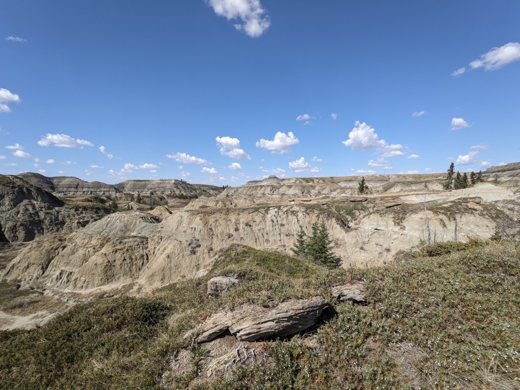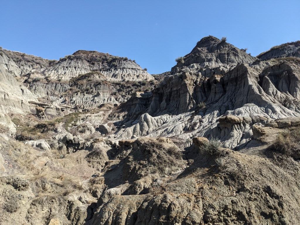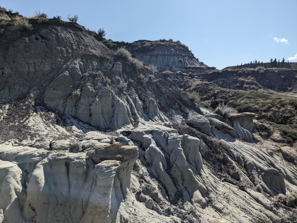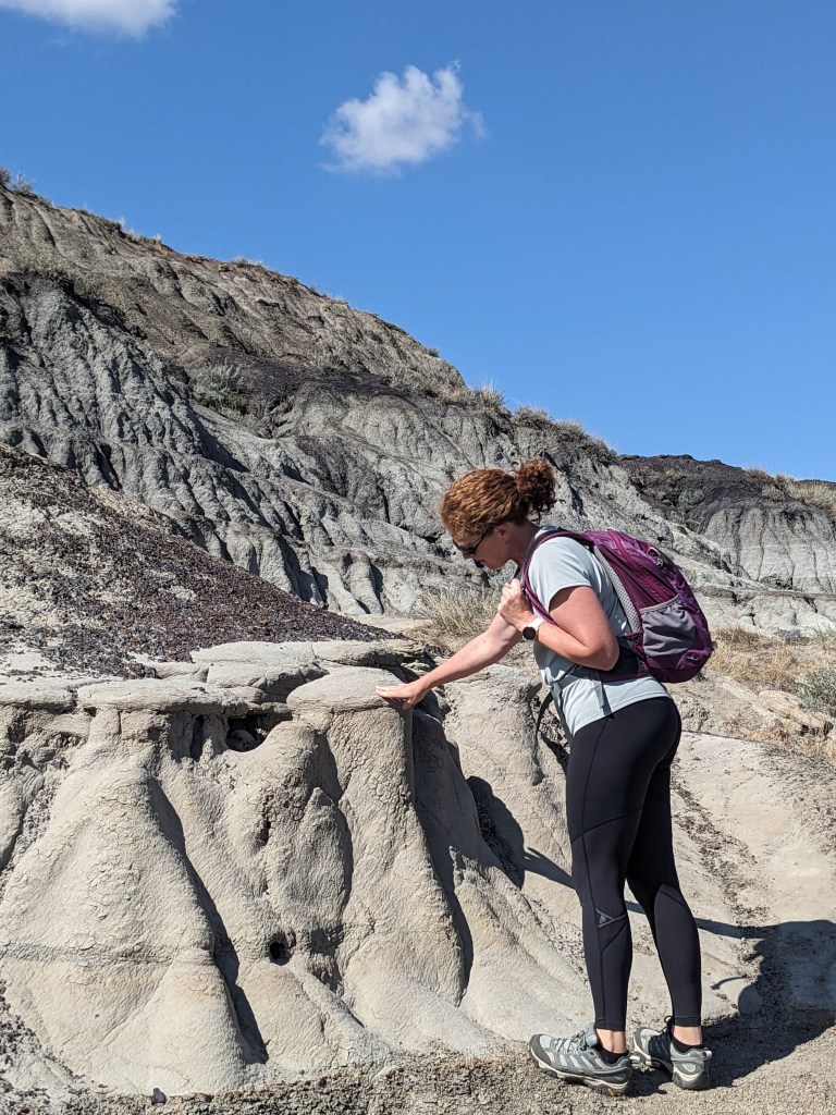 Drumheller had been on our list of “must visit” places since the beginning of our trip. Drumheller is in an area of Canada known as the Badlands (which stretches East from Drumheller in Alberta to the Saskatchewan border and south to the United States) and is home to amazing rock formations and the largest deposits of dinosaur bones in the world….a geologists paradise!